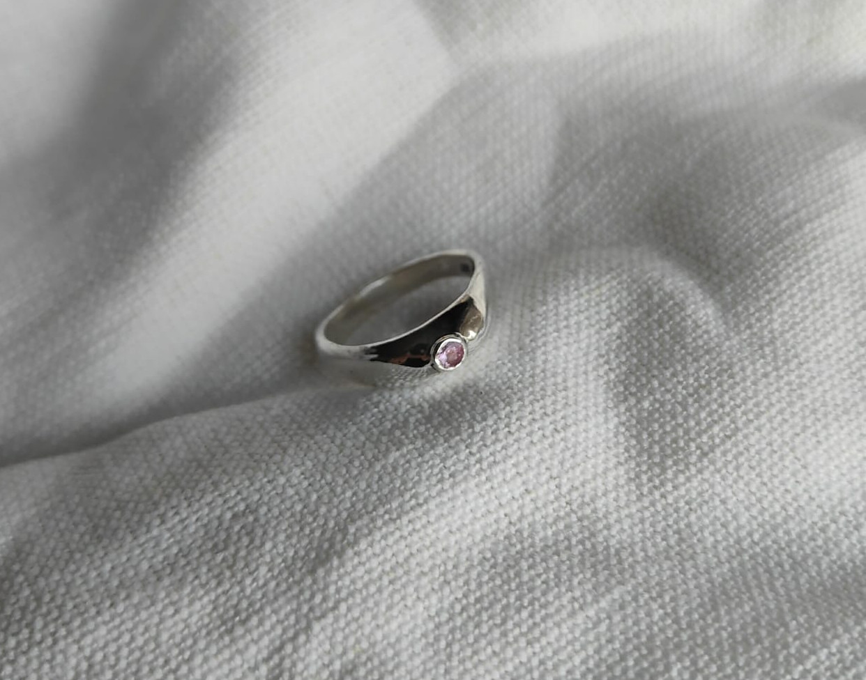 Made by carving wax into this beautiful, tactile shape, casting into recycled sterling silver with a 3mm stone of your choice. Fully hallmarked and available to pre-order.